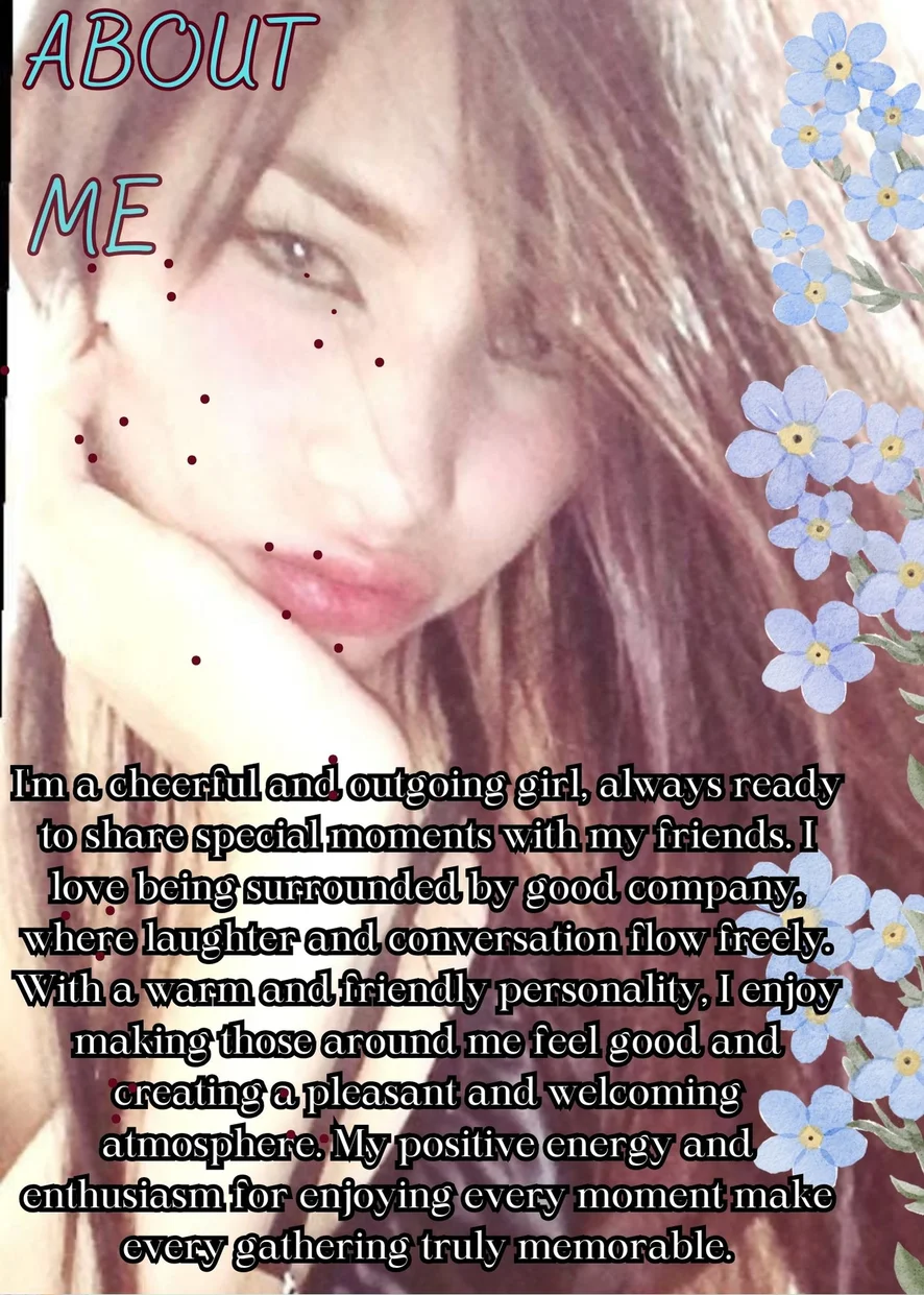 I'm a cheerful and friendly girl with a smile that always tries to brighten someone's day. I might seem a little shy at first, especially if I don't know someone well, but once I feel comfortable, I show my true self: a caring, loving person with a big heart. I like to make those around me feel good, and I enjoy genuine connections—the kind built on laughter, heartfelt conversations, and small gestures of affection.